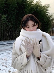 新款马海毛韩系围巾女冬季高级感渐变拼色加厚保暖韩版ins披肩礼