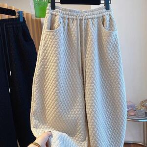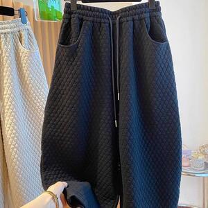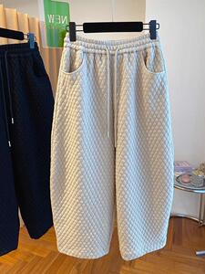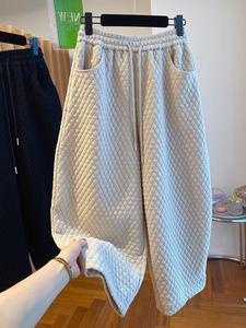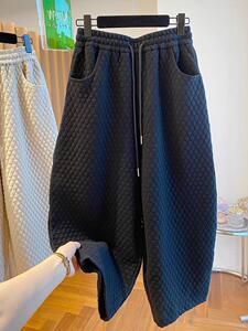 300斤感华夫格菱格香蕉休闲裤女宽松百搭哈伦裤奶奶裤