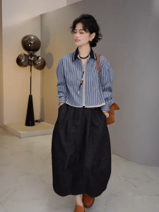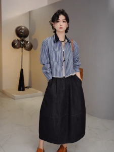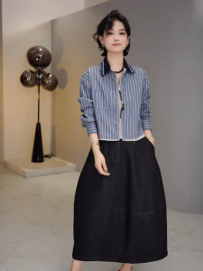 条纹衬衫女短款上衣秋季2025新款宽松百搭高级感小个子衬衣外套