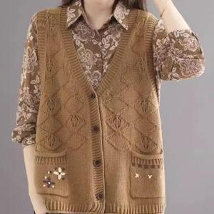 文艺复古镂空绣花针织马甲女春秋新款宽松无袖背心坎肩开衫外套