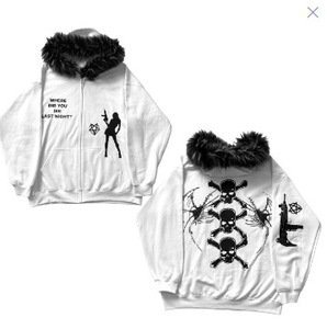 跨境卫衣拉链连帽衫男骷颅印花春秋季毛绒帽设计拉链开衫外套上衣