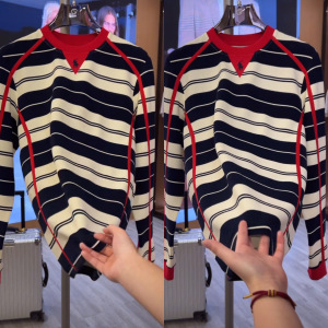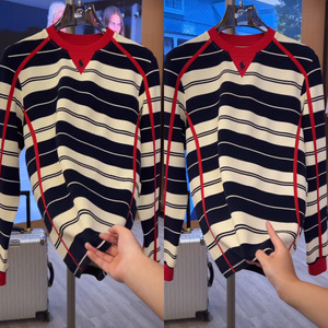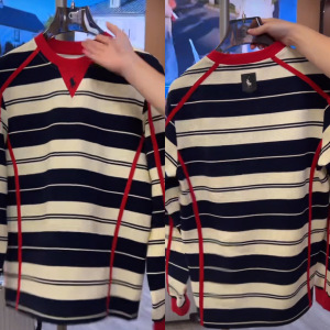 轻奢秋季欧美风条纹时尚休闲百搭长袖男女同款经典复古圆领上衣