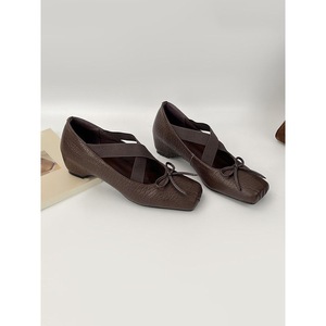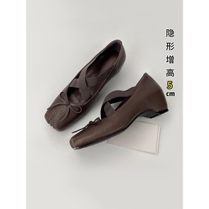 羊皮版~内增高芭蕾舞鞋女2025新款猪鼻蝴蝶结气质单鞋舒适玛丽珍