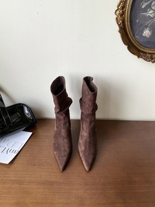 2025秋季新款欧美时尚尖头细跟高跟瘦瘦靴靴气质网红女短靴时装靴