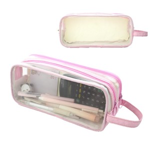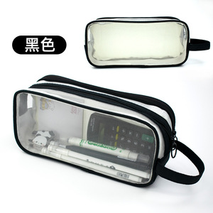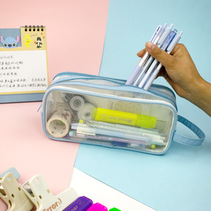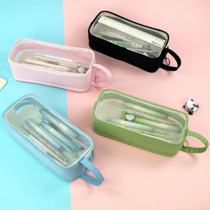 双层透明网纱笔袋简约多层手提笔袋大容量学生考试专用文具收纳袋