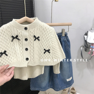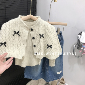 女童斗篷披肩毛衣套装新款儿童洋气针织衫女宝宝打底衫两件套外贸