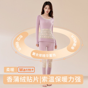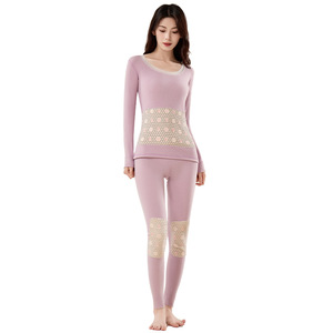 蕾丝花边圆领女士保暖内衣套装10A抗菌秋衣秋裤贴片加厚秋冬打底