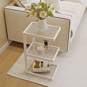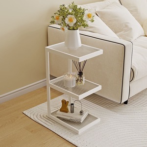 客厅沙发家用落地置物架极窄床头柜轻奢置物架边几奶油风玻璃角几