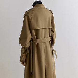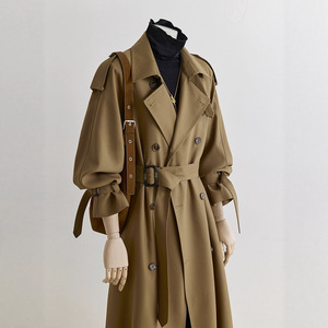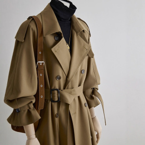 春秋2025新款经典翻领收腰系带大衣感卡其色中长款风衣外套女黑色