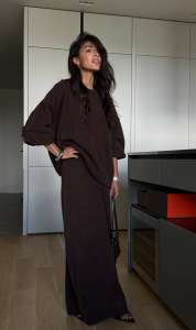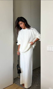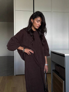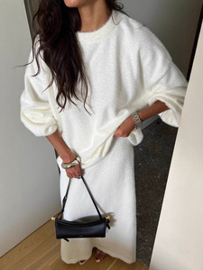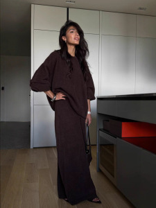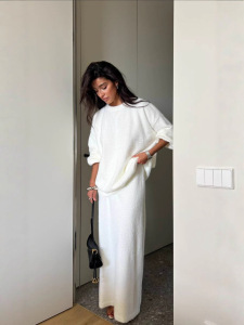 2025新款休闲两件套女高级感纯色长袖针织衫+半身长裙套装女批发