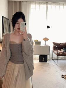 韩系慵懒风软糯宽松毛衣外套针织外搭上衣2025感早秋季开衫女