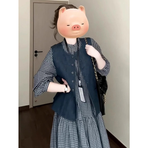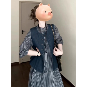 早秋穿搭一整套复古格子连衣裙女2025新款法式设计感马甲长裙套装