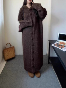欧美2025秋冬新款宽松麻花连帽针织衫外套时尚大码慵懒风毛衣女