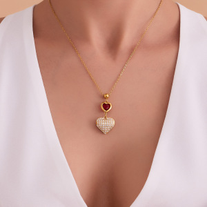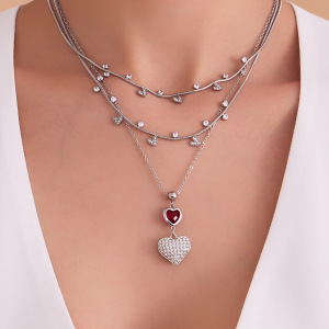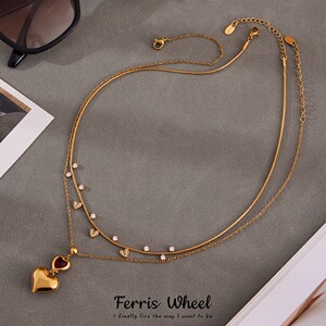 摩天轮欧美跨境轻奢心形镶钻项链小众设计多个锆石吊坠叠戴锁骨链