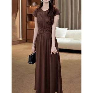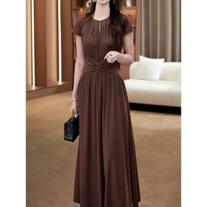 女士轻奢高级感小香风纯色短袖连衣裙夏季新款时尚洋气收腰A字裙