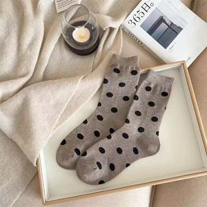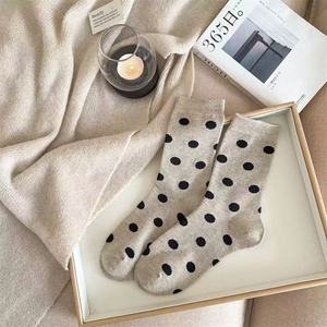 复古圆点袜子女中筒袜韩国时尚秋冬新款美拉德咖色系可爱波点长袜