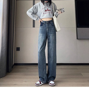 2025新款高腰直筒牛仔裤女春秋显瘦百搭拖地长裤窄版休闲阔腿裤潮