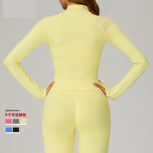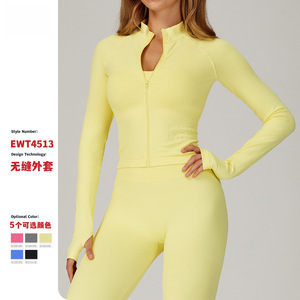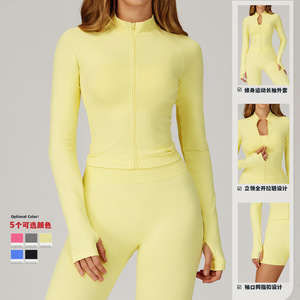 无缝立领拉链瑜伽外套防风修身保暖上衣运动跑步外套女
