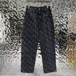 ch25秋冬新款小众设计时髦复古十字架烧花牛仔裤