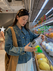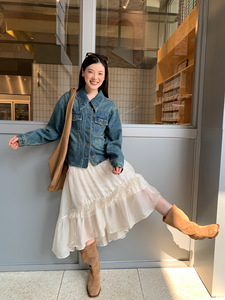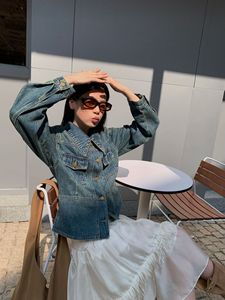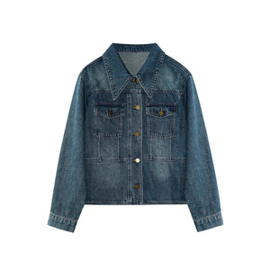 诠释美 NEWOPEN 25秋复古港风双口袋水洗做旧翻领牛仔外套女F6371
