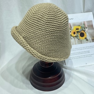 秋冬日系可爱粗毛线卷边渔夫帽女优雅气质羊毛针织盆帽保暖帽子潮