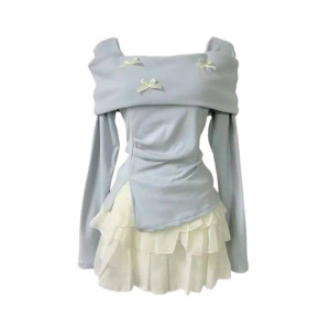绝绝子新款女装春夏季俏皮套装一字肩上衣杏色半身短裙两件套装裙