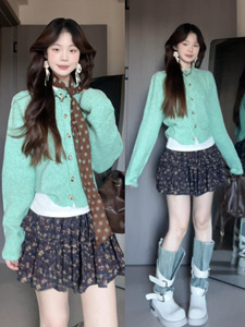 早秋氛围感绿色毛衣针织开衫外套女2025新款森系复古宽松气质上衣
