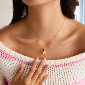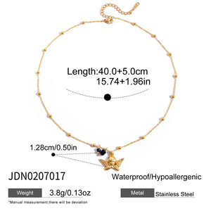 万兴欧美黑色天然石天使吊坠项链配饰女跨境饰品设计感不锈钢首饰