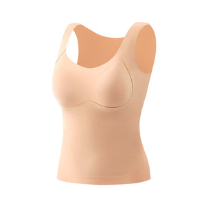 8868秋冬德绒保暖背心带胸垫修身打底沸腾无痕贴片外穿内搭内衣女