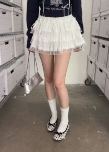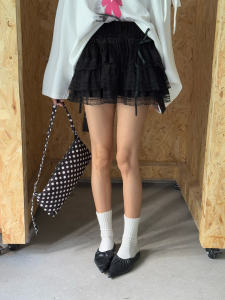 ME KAKAMEE十三行秋miu系蕾丝拼接蝴蝶结短裙半身裙(有安全裤)783