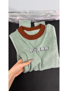 2025秋季chic撞色套头针织打底衫女修身辣妹上衣可盐可甜内搭毛衣