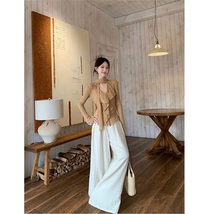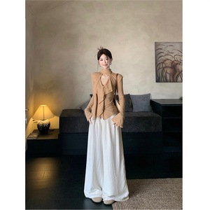 松弛系设计感飘带V领长袖T恤女2025秋季新款修身显瘦小众chic上衣