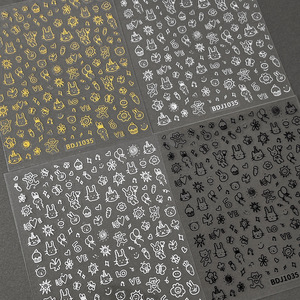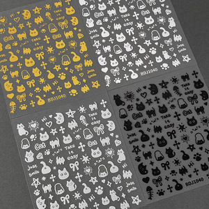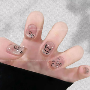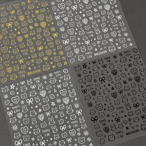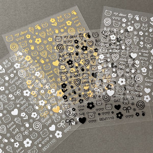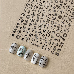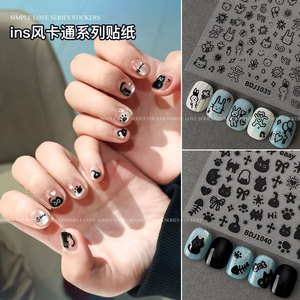 ins涂鸦美甲贴纸2025新款可爱卡通小狗猫咪背胶指甲贴花装饰批发