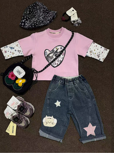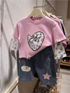 2025秋款爱心猫咪假两件星星裤裤套装-66245