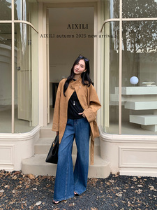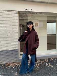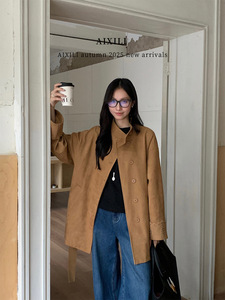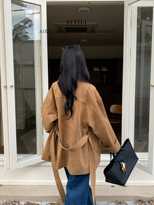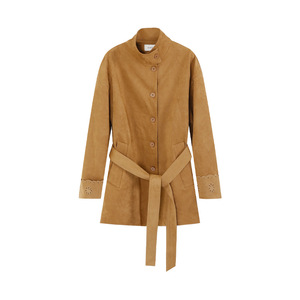 爱西里2025秋简约气质高级感袖口翻边绣花廓形显瘦麂皮风衣15363