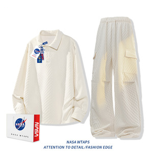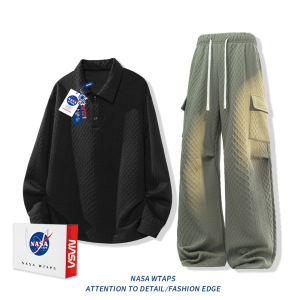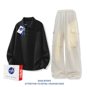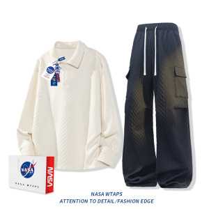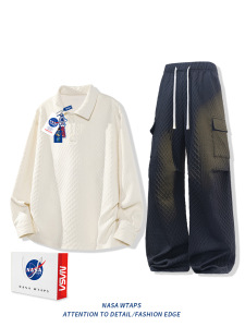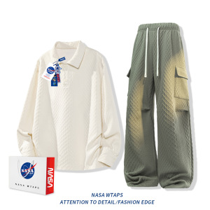 NASA ABOUT美式提花POLO衫套装男款春秋季设计感情侣休闲两件套潮