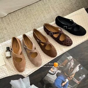 THEMANDAGO芒大果 自带高级感老钱风圆头交叉带平底玛丽珍鞋