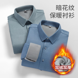 新款男士保暖衬衫长袖冬加绒加厚商务男装暗花商务休闲高档衬衣男