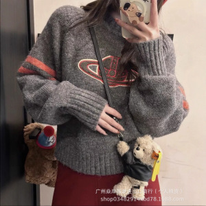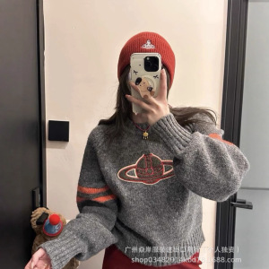 vivienne土星西太后宽松慵懒圆领提花条纹加厚毛衣秋冬外套女代发