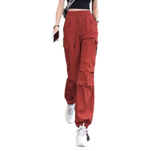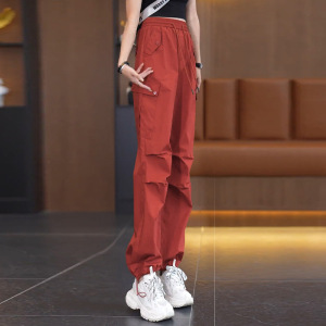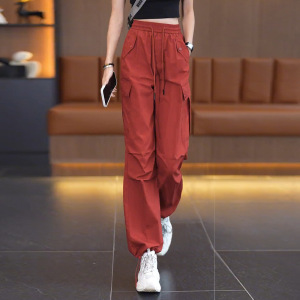 红色美式工装裤女直筒裤2025新款夏季时尚百搭高腰宽松阔腿运动裤
