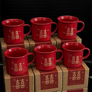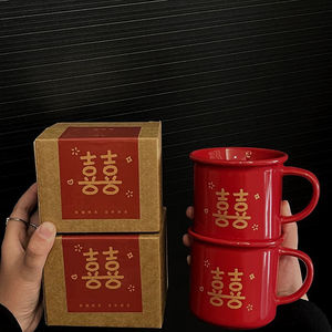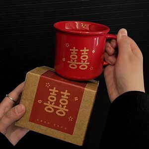 创意喜字杯喜字牙杯新婚漱口杯结婚陶瓷杯子陪嫁套红色情侣水杯