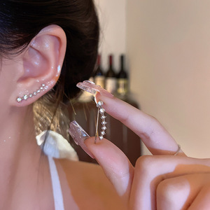 韩系爆款一字精致锆石弧形耳环女轻奢小众高级感时尚气质耳钉耳饰
