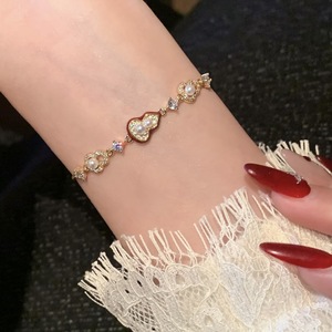 真金电镀锆石珍珠葫芦手链新中式复古精致手环轻奢小众高级感手饰