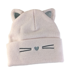 秋冬可爱猫咪刺绣儿童针织帽保暖毛线帽