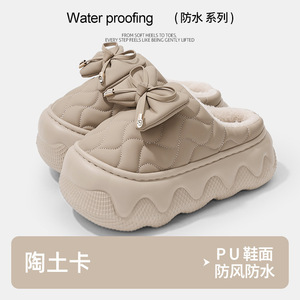 增高防水2025女冬季新款棉拖鞋羽绒厚底棉鞋室内居家外穿轻便棉鞋