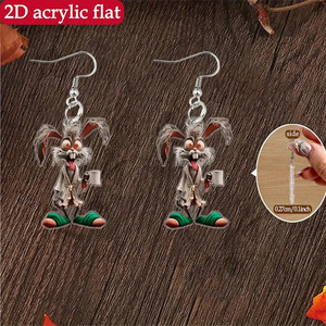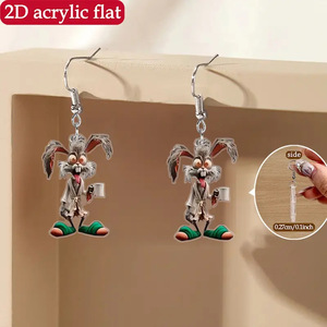 跨境新款俏皮的卡通兔子耳环平面亚克力小众设计感可爱小兔子耳饰