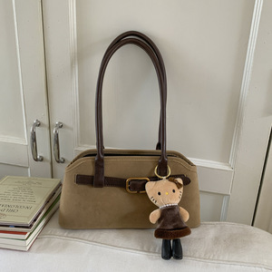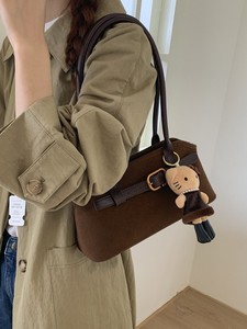 跨境复古鹿皮绒公文包女2025秋冬新款高级感时尚通勤大容量托特包