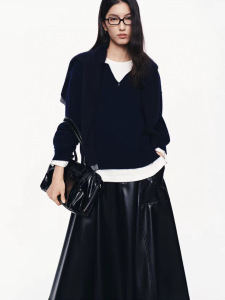 M**O女装毛衣2025秋新品绵羊毛山羊绒混纺POLO领轻暖智性针织衫女