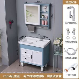 蓝白款带搓板带镜柜-62cm特价无龙头赠品套装
