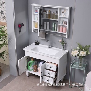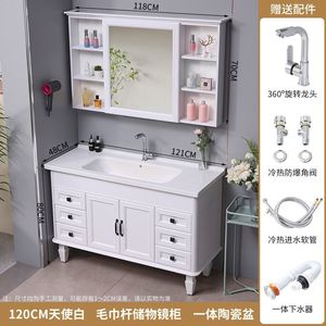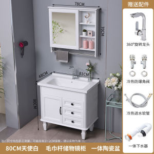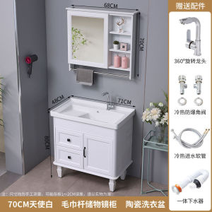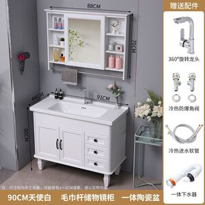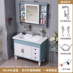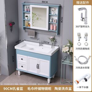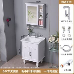 蓝白款无搓板带镜柜-62cm特价无龙头赠品套装